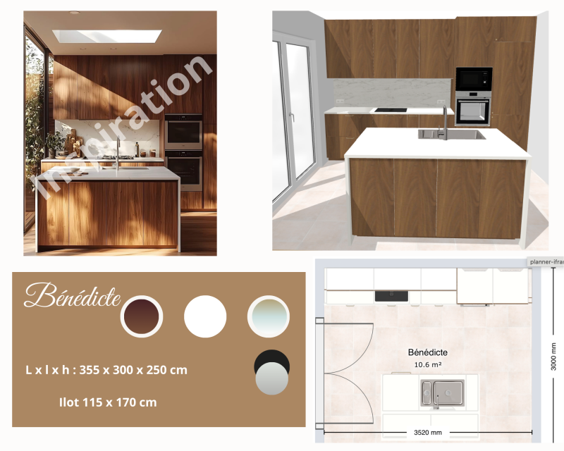 L’îlot ajoute un espace de travail supplémentaire et peut inclure des rangements ou un coin repas.